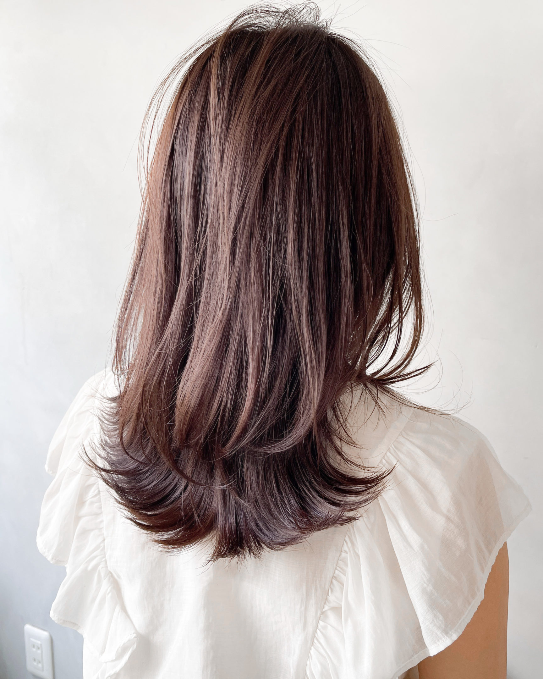 ミディアムヘアに、レイヤーをつけることでワンカールで巻いた時に動きが出やすくなっております!