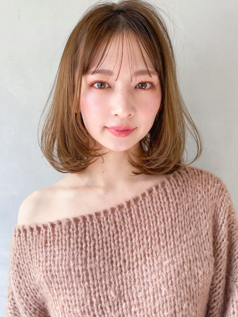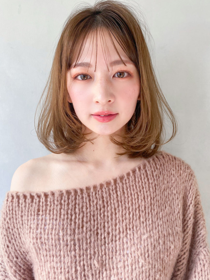 全体を伸ばし中の方や、大人っぽいより可愛い印象にしたい方にはオススメの前髪です。