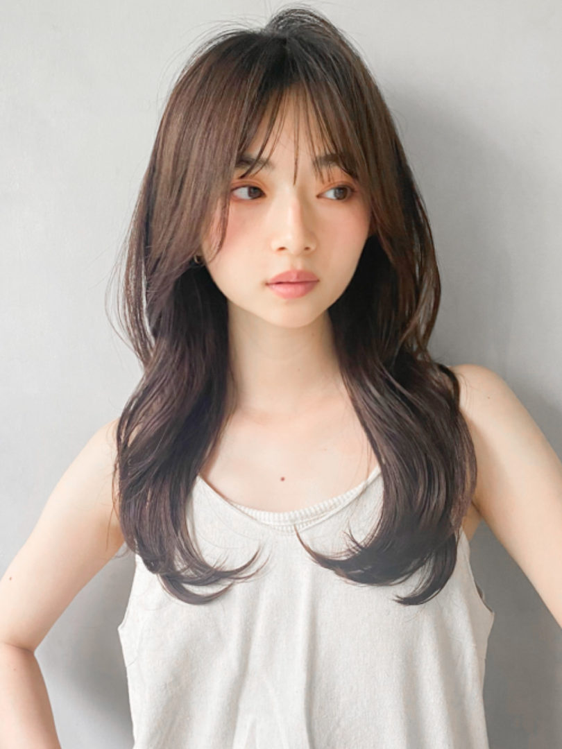 全体を伸ばし中の方や、大人っぽいより可愛い印象にしたい方にはオススメの前髪です。