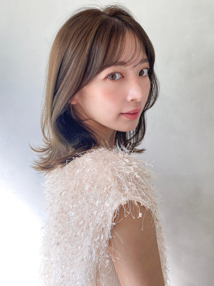 全体を伸ばし中の方や、大人っぽいより可愛い印象にしたい方にはオススメの前髪です。