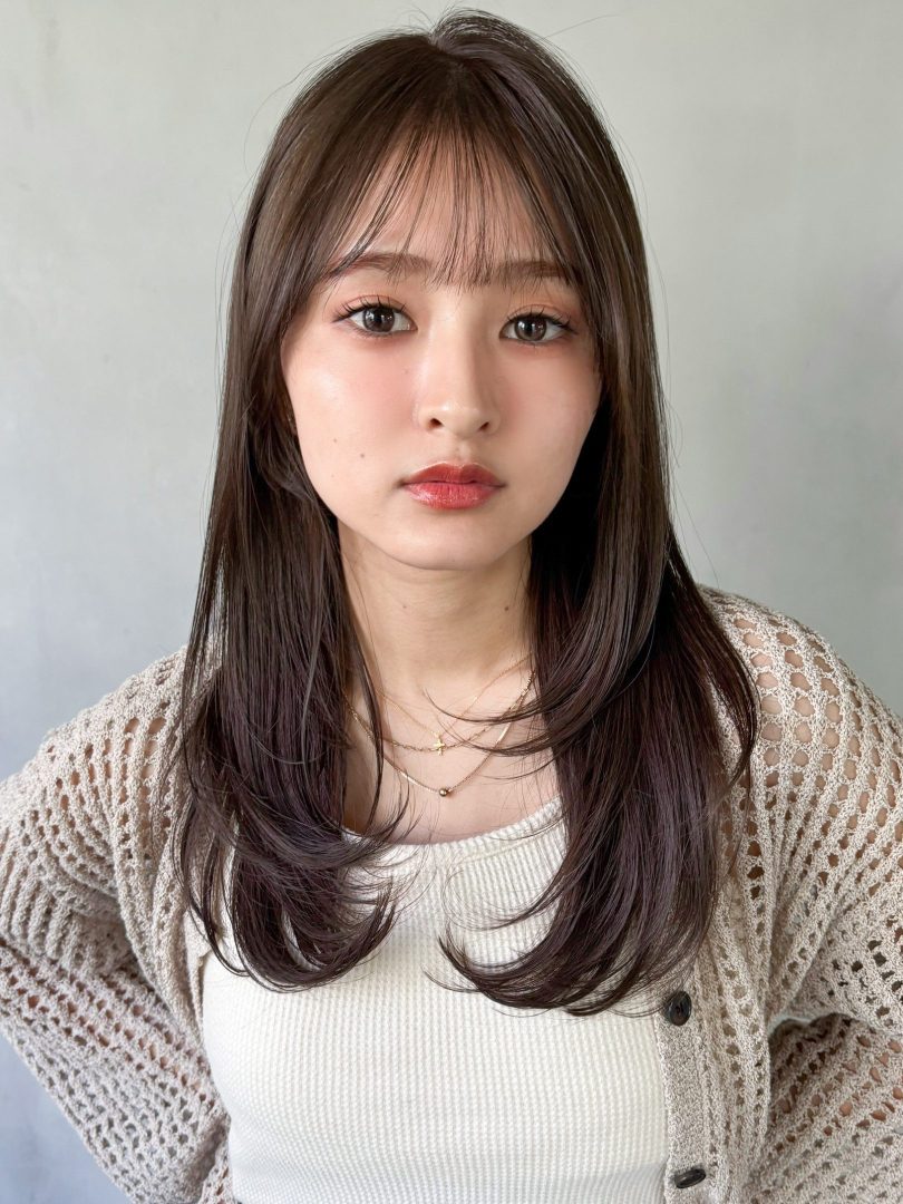 全体を伸ばし中の方や、大人っぽいより可愛い印象にしたい方にはオススメの前髪です。