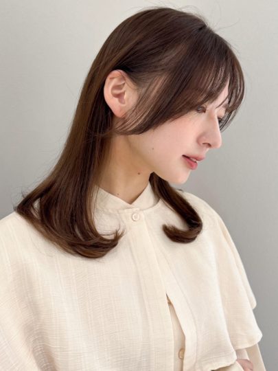 レイヤーを入れすぎず、重すぎず、絶妙なバランスでつくられるこのスタイルは、誰でも挑戦しやすく、清潔感や上品さを演出できる万能スタイルです。