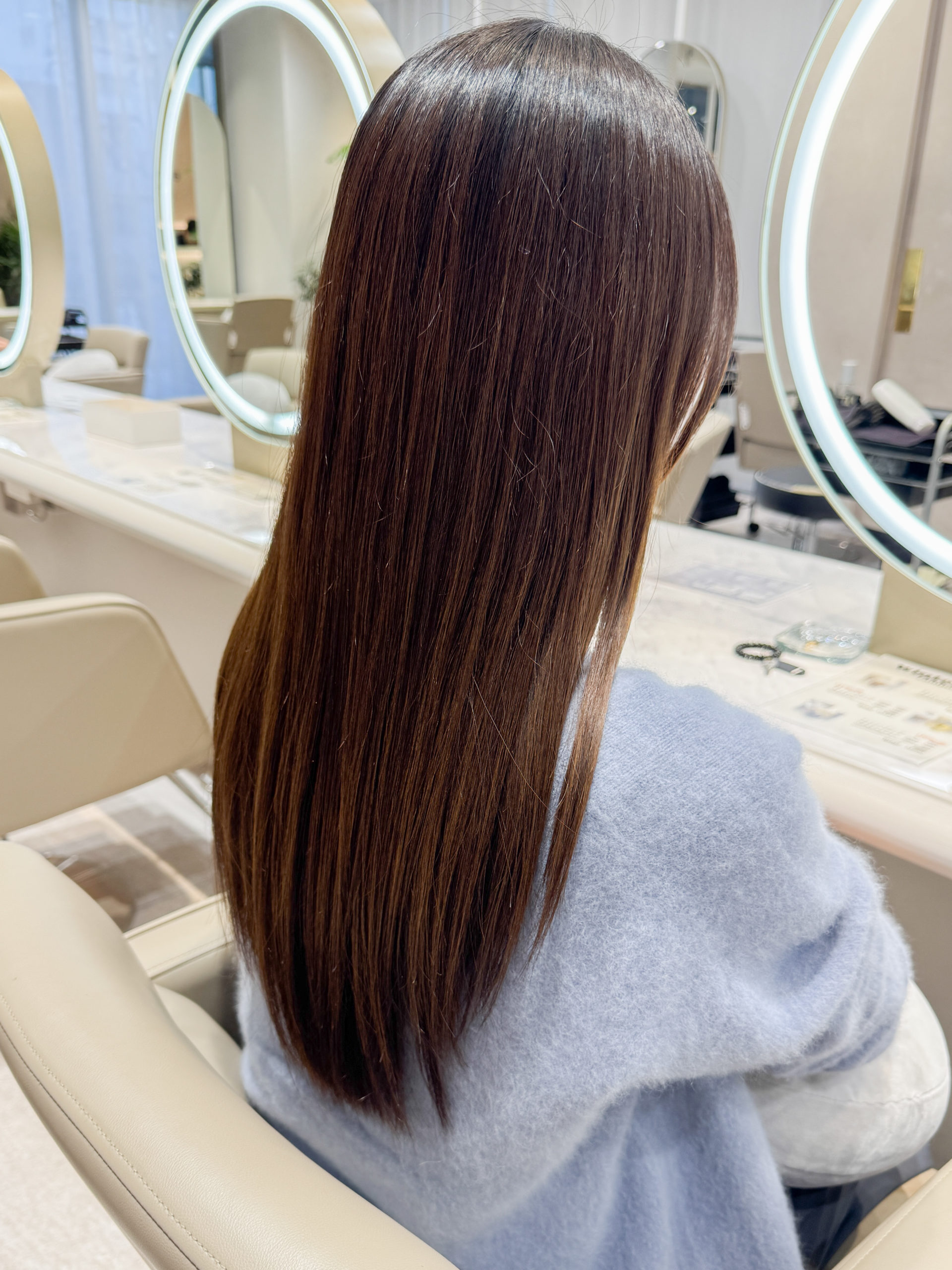 特にイルミナカラーのような高彩度カラーは、ツヤが透明感を引き立てる鍵。