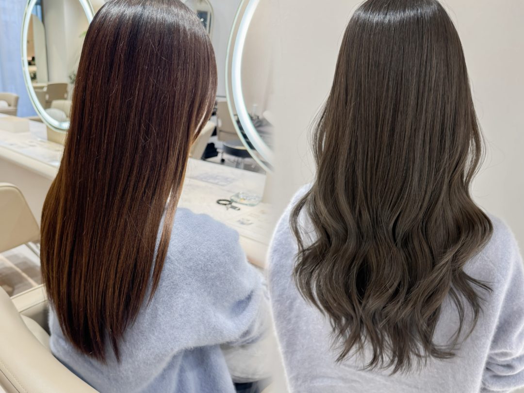 髪質や履歴を見極めながら赤みを抑えていくことで、やわらかく透けるような質感や、自然な抜け感のあるカラーを長く楽しむことができます。