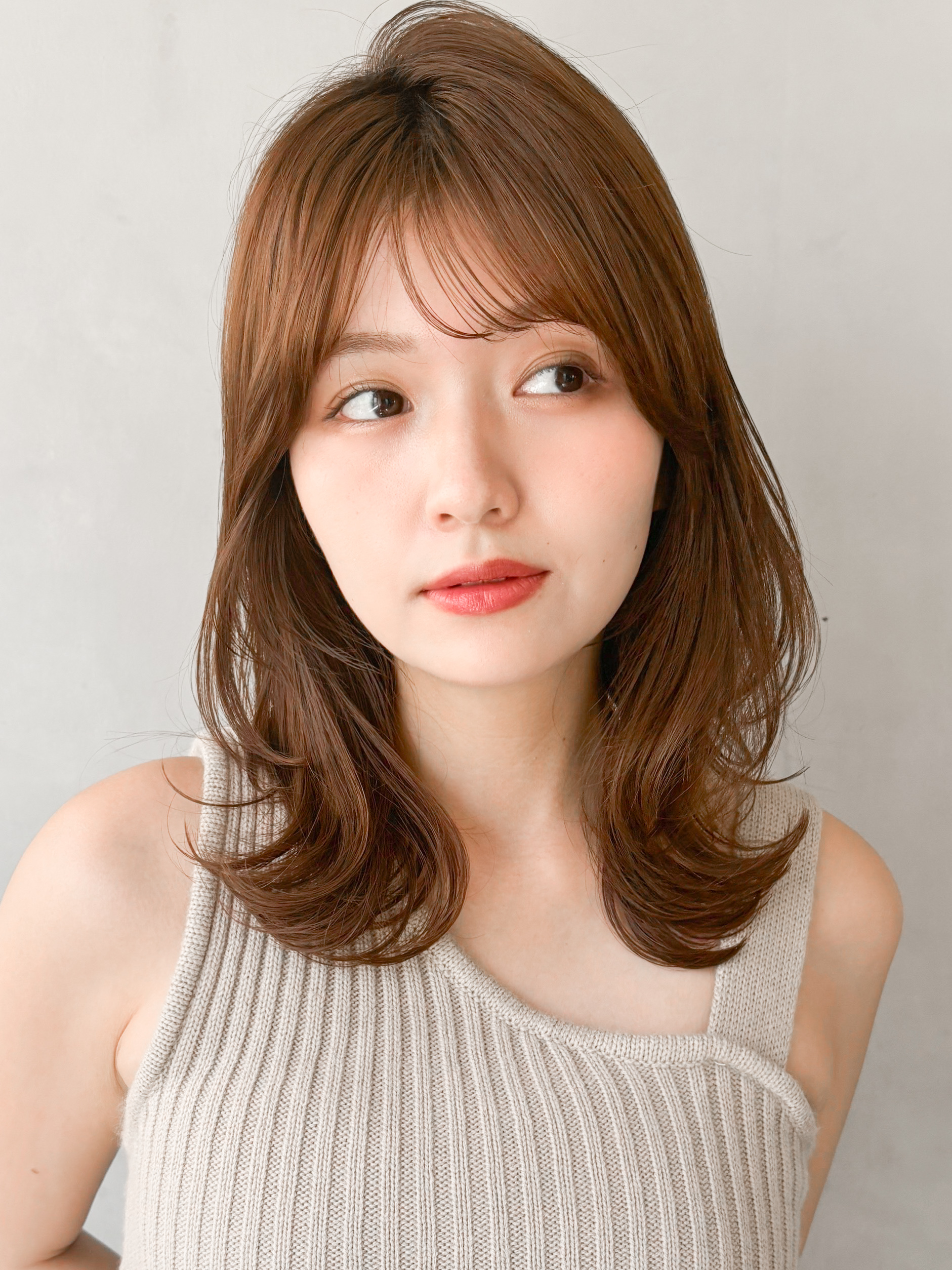 今回おすすめするのは鎖骨下のセミロングでのくびれヘアです!