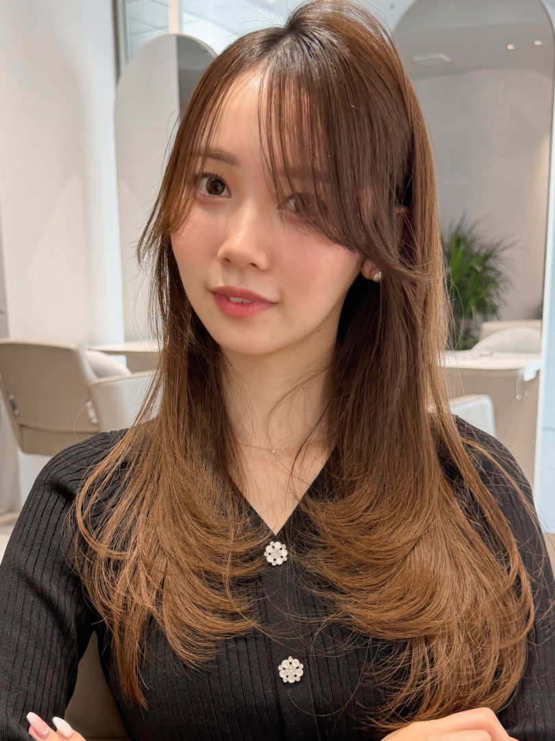 カットで毛先にまとまりを出しつつ、ナチュラルな丸みが出るように仕上げました。