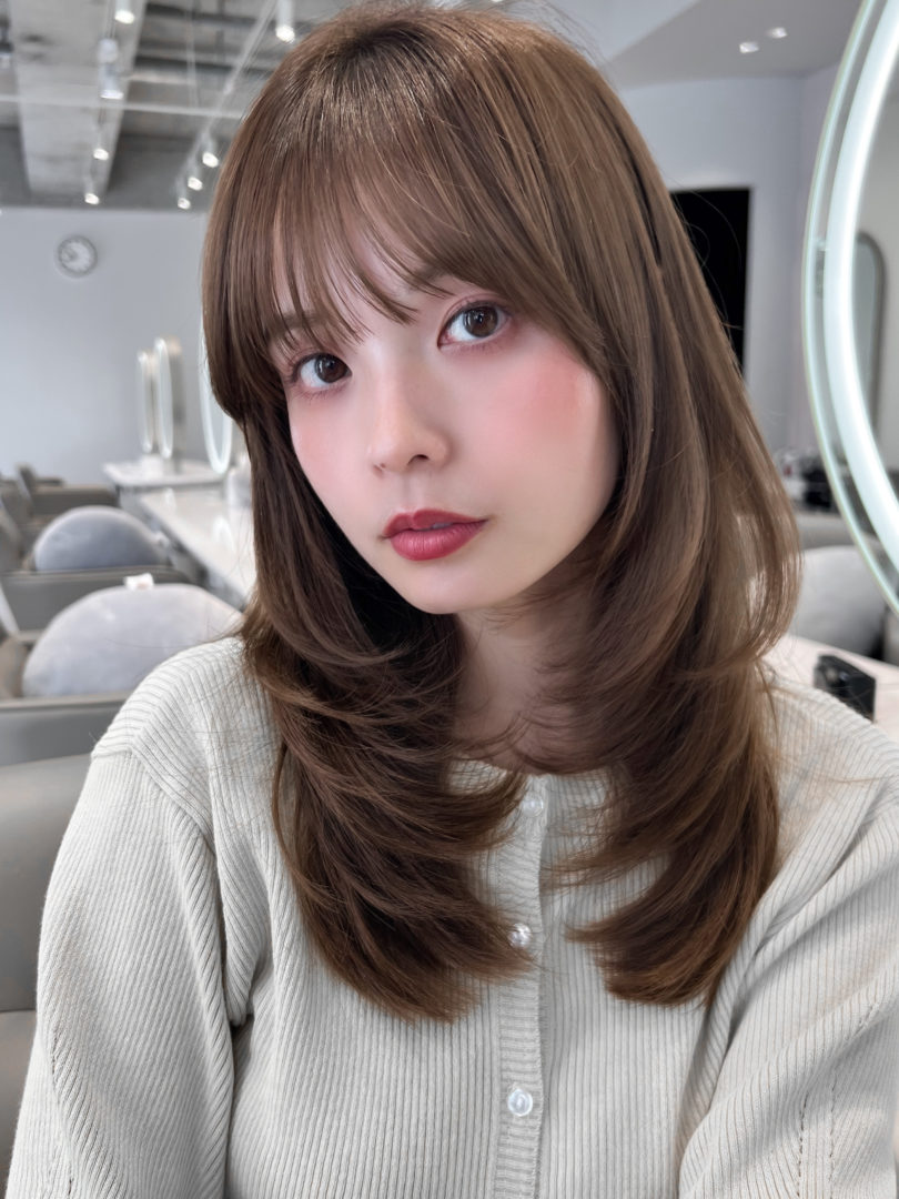 カットで毛先にまとまりを出しつつ、ナチュラルな丸みが出るように仕上げました。