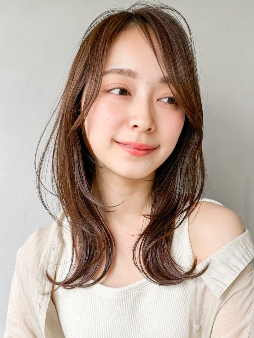 今回おすすめするのは鎖骨下のセミロングでのくびれヘアです!