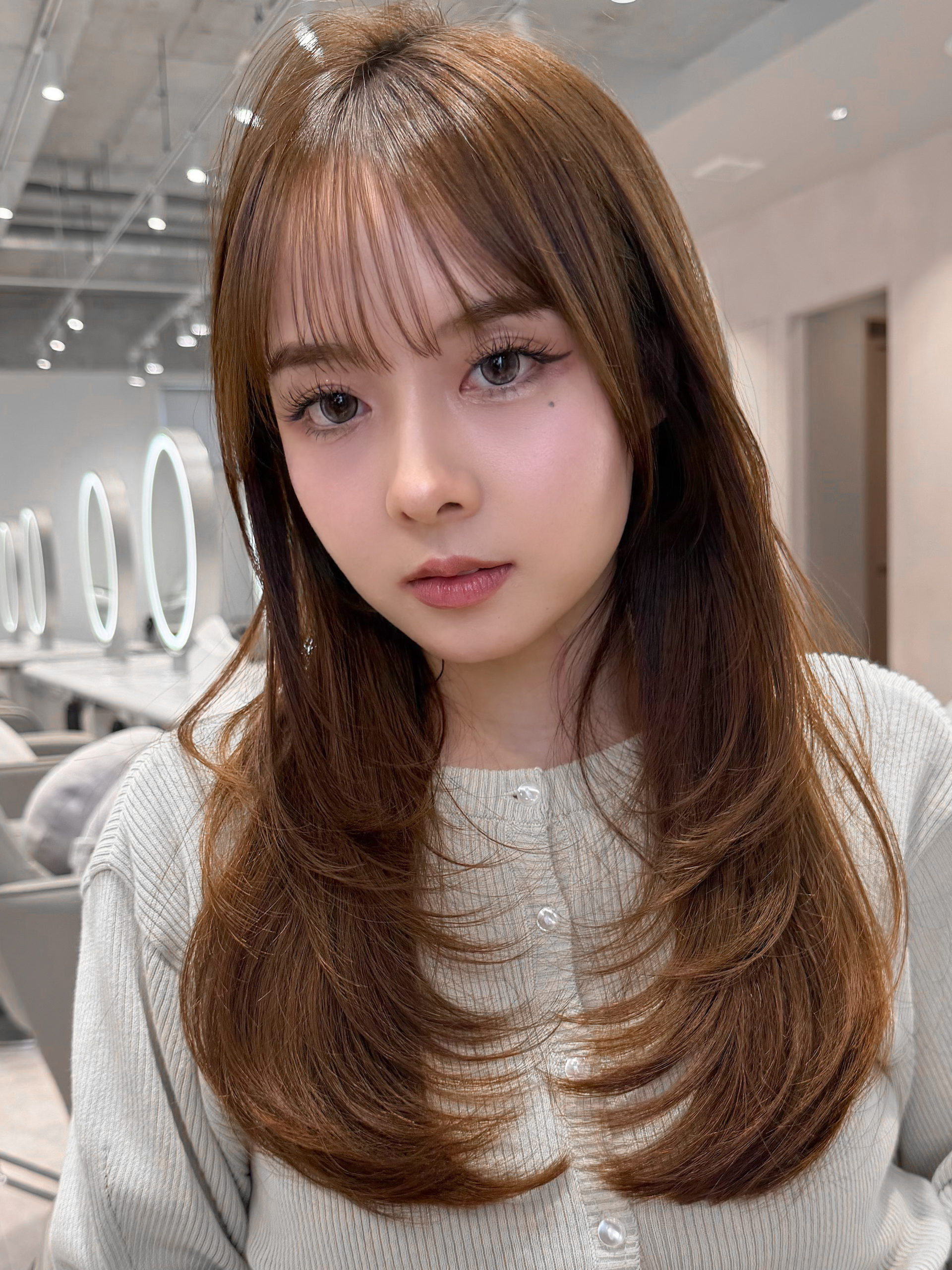 カットで毛先にまとまりを出しつつ、ナチュラルな丸みが出るように仕上げました。