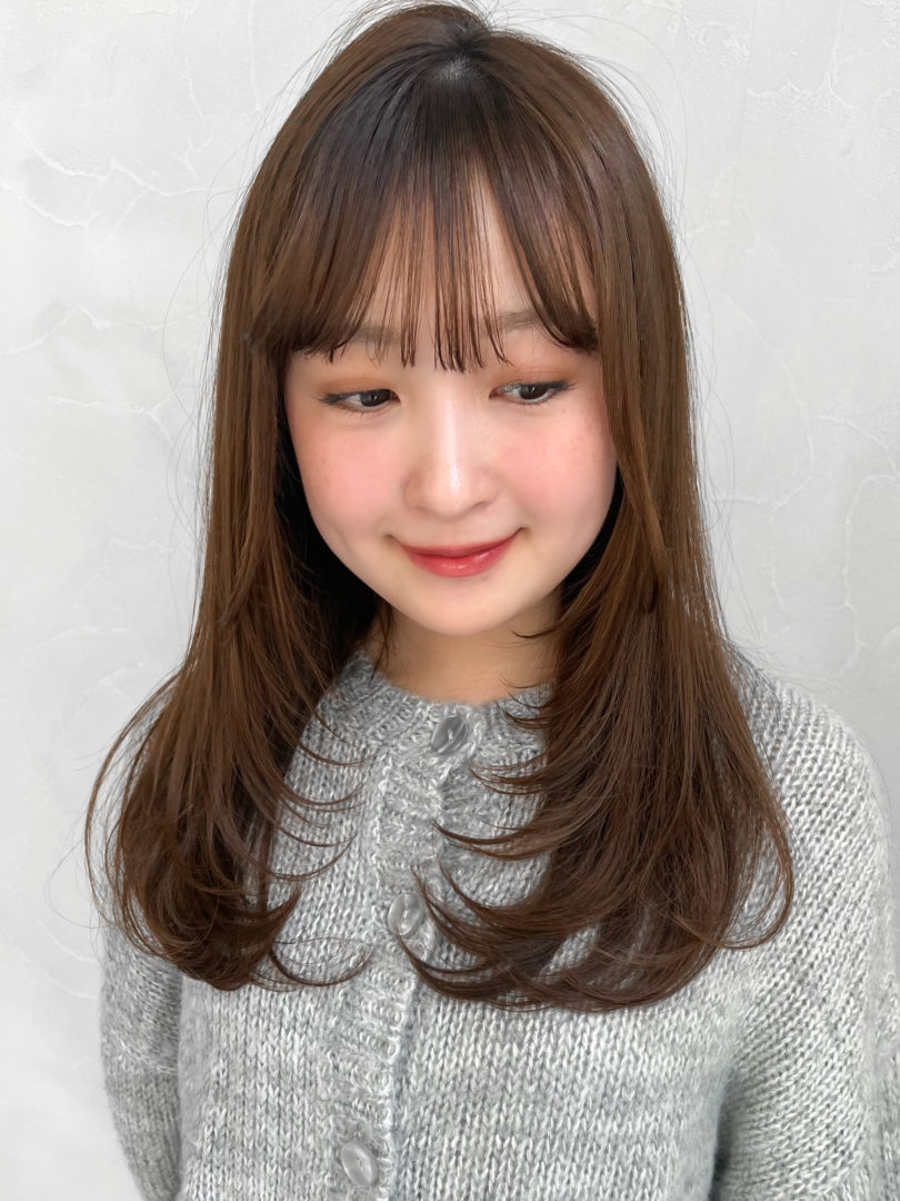 カットで毛先にまとまりを出しつつ、ナチュラルな丸みが出るように仕上げました。