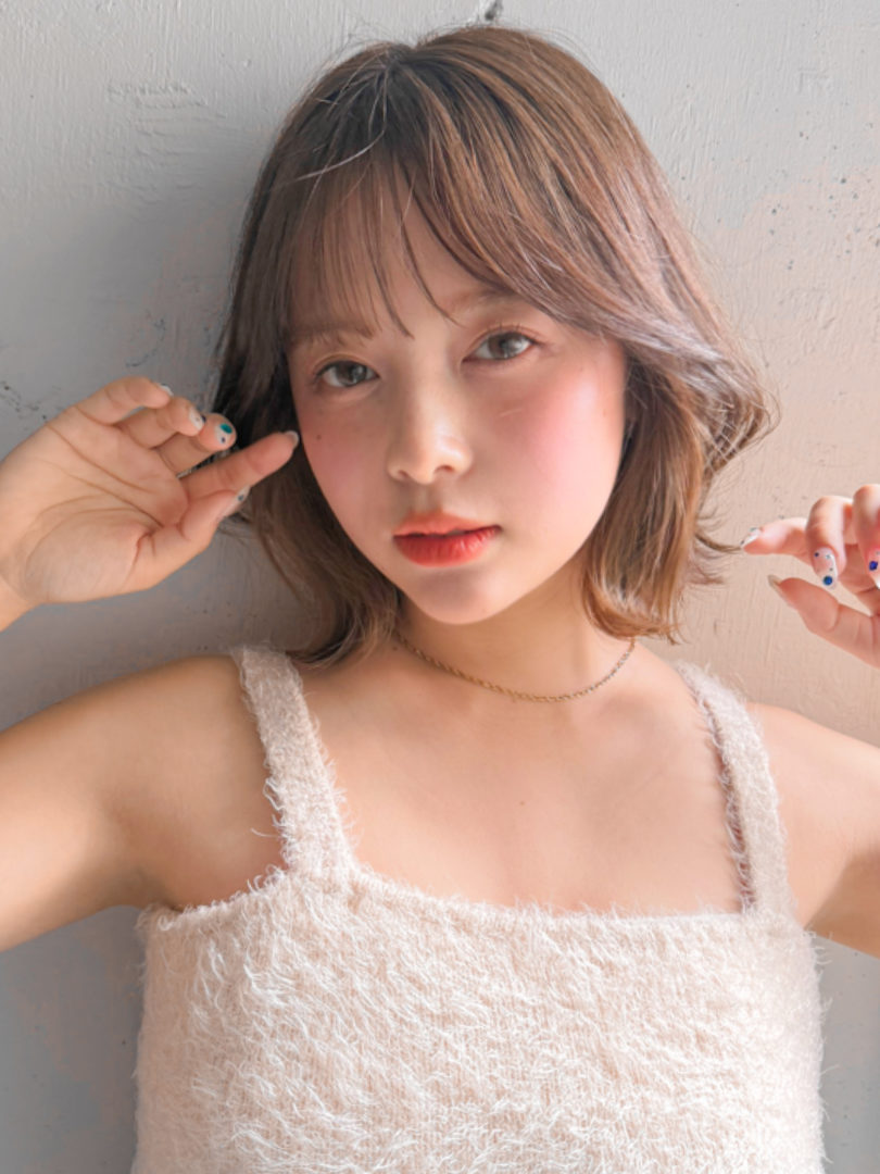 目と眉の間でカットして、おでこをチラ見せさせることにより小顔効果UP!